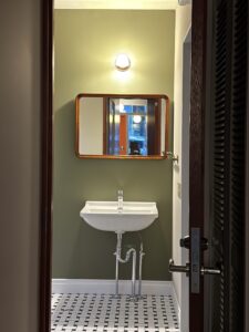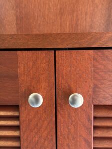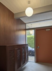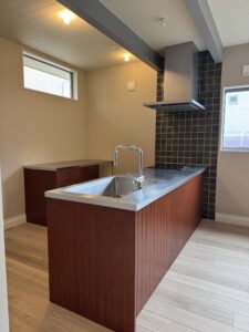 ローズブラウン色はキッチンと玄関収納もお揃いで